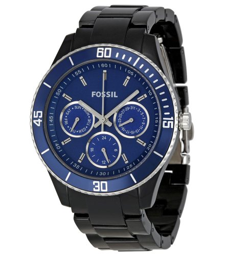 Black plastic case with a black plastic bracelet. Fixed blue stainless steel bezel. Blue dial with silver-tone hands and index hour markers. Minute markers around the outer rim. Dial Type: Analog. Luminiscent hands and markers. Three sub-dials displaying: day of the week, date and 24 horus. JapaneseFossil Women's ES2828 Blue Dial Watch Do not Miss!! Black plastic case with a black plastic bracelet. Fixed blue stainless steel bezel. Blue dial with silver-tone hands and index hour markers. Minute markers around the outer rim. Dial Type: Analog. Luminiscent hands and markers. Three sub-dials displaying: day of the week, date and 24 horus. Japanese... Fossil Women's ES2828 Blue Dial Watch