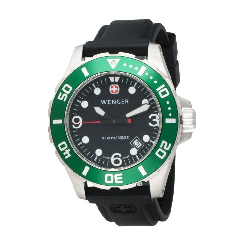 Swiss excellence built to go DEEP! Wenger AquaGraph 1,000m Diver's Watch for land and sea. Fine Swiss craftsmanship and engineering produces a timepiece fit for those seeking to uncover hidden treasures, or for enjoying recreational dives, water sports, even high altitude adventure! Outstanding funcWenger Men's 72234 AquaGraph 100M Green Bezel Black Rubber Strap Watch Do not Miss!! Swiss excellence built to go DEEP! Wenger AquaGraph 1,000m Diver's Watch for land and sea. Fine Swiss craftsmanship and engineering produces a timepiece fit for those seeking to uncover hidden treasures, or for enjoying recreational dives, water sports, even high altitude adventure! Outstanding func... Wenger Men's 72234 AquaGraph 100M Green Bezel Black Rubber Strap Watch